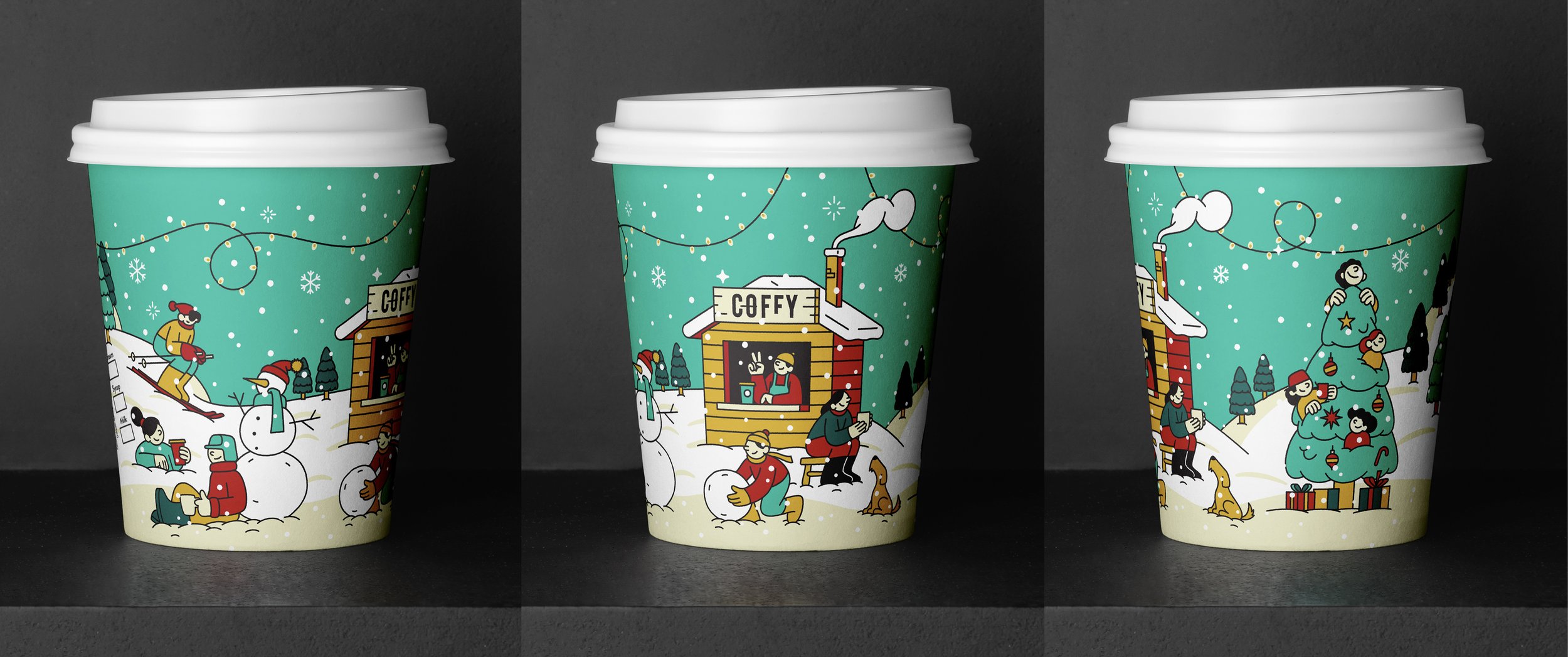 A playful, simple and bold illustration world created for COFFY, a coffee shop chain in Istanbul.